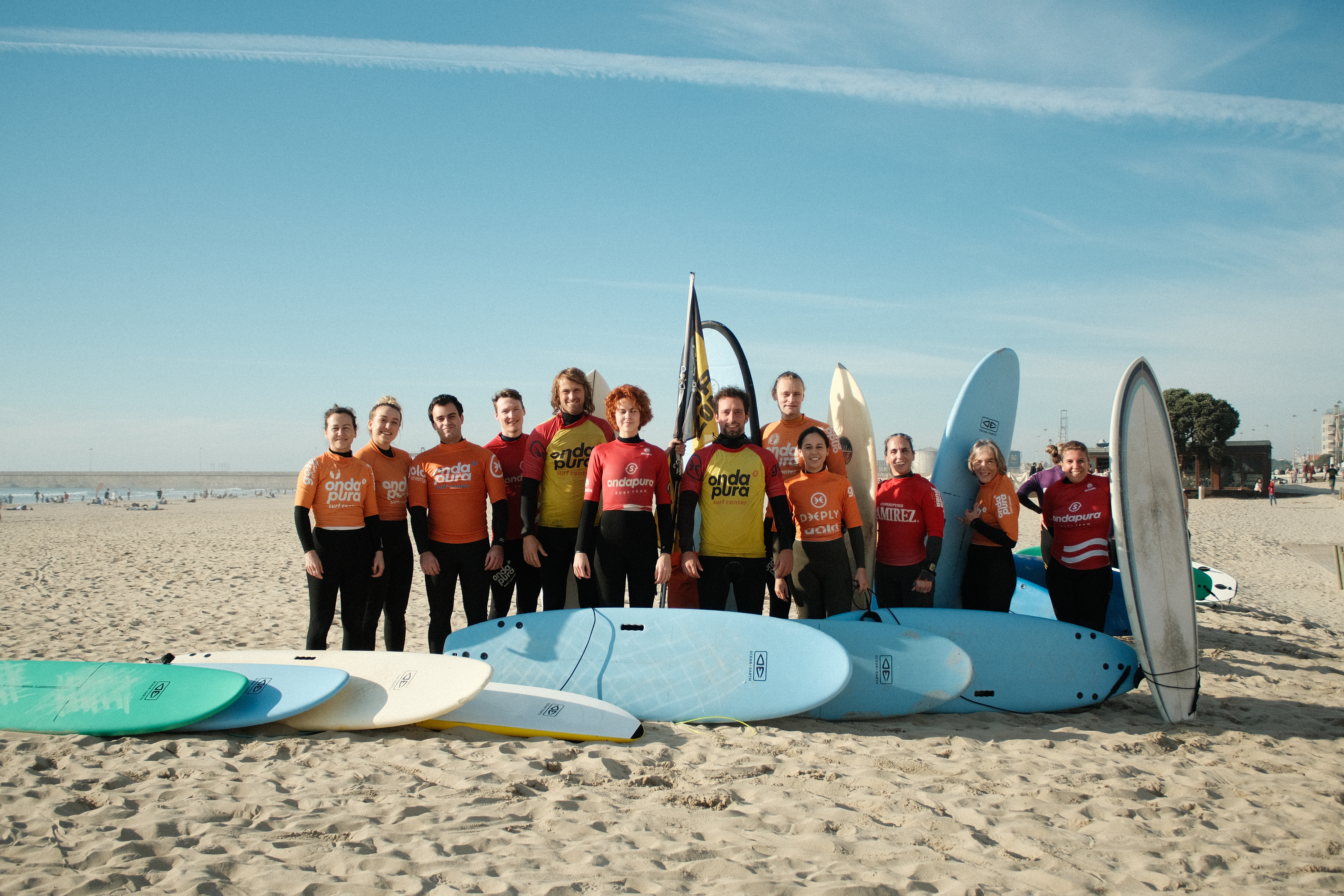 aula de surf em grupo com instrutores qualificados; todo o equipamento necessário: